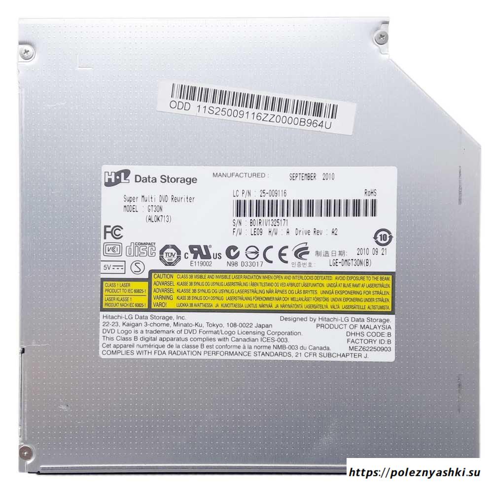 Привод DVD+RW Hitahi-LG GT30N 8x SATA 12.7 мм для ноутбука Lenovo B560, V560 без панели (25-009116, LGE-DMGT30N(B), AL0K713) Б/У